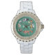 農業動物モノグラム水色グリーン 腕時計