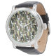 このメンズウォッチは、迷彩中の重なり合う鳥の幾何学的デザインを持つ。色違うは?メッセージを表示