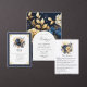 透明ネイビーブルーと金ゴールドフローラ結婚の アクリル招待状