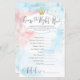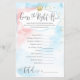 金ゴールドクラウンとピンクとブルーのモダン水色の背景にスクリプトフォントを備え、驚きに最適なベビシャワーゲームカード!このカードを使って性別を明かすパーティー!