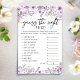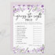 ラベンダープレスエレガント花模様のコレクションから得られるRight Price Baby Showerゲームは、繊細な緑のつる植物を備えた埃の多い紫色の水の色の花模様とスクリプモダントフォントを組み合わせたもの。どんな季節にも最適。事前に変更するには、「パーソナライズ」>「デザイン・ツールを使用した編集」を選択する。