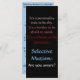 これは選択性向性に関する人々の情与え報に使用されるカードである。下の方にウェブサイトがあって、詳しい情報を人々に送る。あなたが望みカスタマイズのウェブサイトを置くためにアイテムを置くか、完全にそれを取り除くことができる。 selectivemutism.orgは、このカードの個人的なデザイナーお気に入りのである。