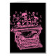 毒書の多い手紙や話は?このピンクのグラフィックは、ヴィンテージタイプライターが大量のスカルとクロスボーンを作成することを示している。