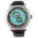 これは「一種ユニークの」部族の狼の腕時計だ!ターコイズを背景に月で鳴る南西の部族の狼が特徴…ターコイズ、オレンジ、黒に囲ま縁どれ!オリジナルアートデザインbyアーティストKerry Miller.