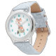 小さな赤いキツネをティール(緑がかった色)の部族衣装で愛らしいイメージで可愛らしい時計。一致するティール(緑がかった色)番号が時計の簡単を作読る。
