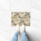 パリのイメージのあるすばらしいヴィンテージのフランスのな郵便はがきの前部そして背部は、および手書きメッセージ、住所およびフランス人のスタンプ、パリの旧式な地図とおよびフランスおよび他のフランスのな執筆、消印および短命なもの美しいパリにフランスのなテーマの玄関マットの敷物をするために団結します。 一致項目はZazzleの私の店で利用できます。