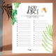 ブルワリーベビーコレクションの一部、このベビーABCsゲームはすべての年齢のためのおもしろいである!一来文字に一つの単語を持ち、最も勝った人を選ぶ!ホストは、ゲストが必要とする割り当て時間を設定し遊る。すべての文字は、完全にあなたの大事な行事の詳細に一致するようにカスタマイズ可能↣単クリックに'パーソナライズ'ボタン。