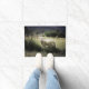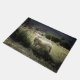 野原のフェンスの後ろの小さな白い子羊 ドアマット