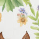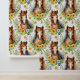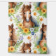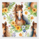 美しい水色の野生の馬パロミノ白い背景に緑の黄色と青の花に囲まれた流れるマネ。その馬を愛する小さな女の子に最適。