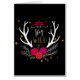 野生滞在。 花の(雄ジカの)枝角を搭載する手描きのポスターはレタリングおよび装飾の要素を渡します。 このイラストレーションはTシャツおよびバッグのプリントとして使用することができます。 | Bigstock® -複製権所有。