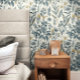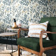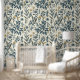 金ゴールドと海軍ヴィンテージ植物模様 壁紙
