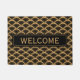 金ゴールドと黒アールデコの魚のスケールとファンの花のパターン歓迎doormat。1920年スタイル素晴らしギャツビーインスパイアパターン。
