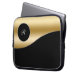 スタイルのあなたのnetbook、ラップトップ、またはタブレットのようなあなたの携帯用電子工学を保護するすばらしいデザインの金ゴールドそして黒いラップトップまたはnetbookの箱。 スタイリッシュなビジネスは専門に見る背景を好みます。
