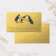金ゴールドホイルの写真の効果の金ゴールドの孔雀の名刺はモノグラムのイニシャルとの名前入り印刷しました。 2羽の孔雀が付いているヴィンテージスクロール。 Elke Clarke©