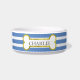 金ゴールドの骨のパーソナライズなペットボウルが付いている青い縞 ボウル