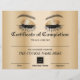 金ゴールドモダンまつ毛の修了証書アワード。