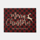 金ゴールドエレガントメリークリスマスブラック&レッドプレイド ドアマット