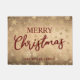 メリークリスマスの美しいドアマット、クラシックレッドとフェイク金ゴールドの質感。下に姓を追加します。