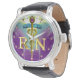 金ゴールドカドゥセウス登録ナースシンボルパープルティール(緑がかった色) 腕時計