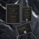 エレガントタイポグラフィロマンチックバロックインスパイアロコ結婚コミニマルデザイン結婚式招待状モダンクラシック新郎新婦シンプルクラシック結婚ズqrコード情報カードの黒結婚金ゴールド詳細カード