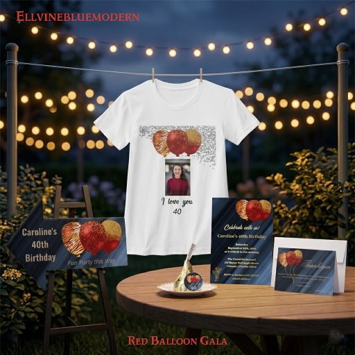 シックな祝折り畳まれた青い背景には、これらの美しい金ゴールドグリッター赤い風船とスタイルであなたの誕生日。枕の前面に6枚の写真を追加し、グリッターの太陽の背面にもう1枚。