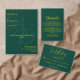 このエレガント緑と金ゴールドの結婚式招待状はモダンの結婚ための完璧なシンプルデザインは、モノグラムと緑の背景に金ゴールド書を備えている。