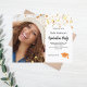 卒業生の垂直方向のサイズの写真を追加。クラシックの白い背景飾色とフェイク金ゴールド星。名前とパーティー・詳細のパーソナライズおよび追加