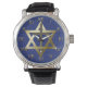 金ゴールドスター・オブ・ダビデとブラウン・クロス 腕時計