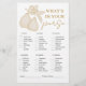 この保金ゴールドと一緒に行くおもしろい完璧な梨"あなたの財布の中に何がある"ブライダルシャワーゲーム。洋エレガント梨のアートワークと国の詳細を取り上げフランスのて、このアクティビティはよくはしゃぐ、ゲストがポイントを獲得するために日々のバッグと予期しないアイテムをチェックする。考え深いtouchのために花嫁の名前でパーソナライズ。完全なPerfect Pearブライダルシャワーコレクションとコーディネート。招待状、装飾、その他のマッチするゲームを含む。