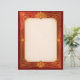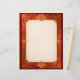 ルビーの赤い背景にファンモチーフを施した金ゴールド、アートデコのフレームは、このレタエレガントーヘッドは通信、チラシ、招待状に最適である。背中は前無地の面と同じ日陰で日焼けしている。