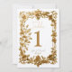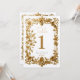 金ゴールドフローラヴィンテージ披露宴テーブル番号カードエレガントは、カスタマイズ可能なデザインを備え、洗練された結婚式のレセプション、フェスティバルの休日、さまざまなイベントに最適である。名前と下部のイベント日のパーソナライズを提供する。