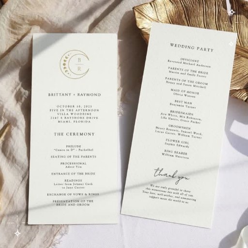 "金ゴールドモノグラムムーンシナ結婚式 プログラム"は、あなたのシナお祝いへの視覚的なガイドである。きれいな白いキャンバス、黄金の三日月、星、月の位相に対して設定し、カップルのスタイリッシュなイニシャルカスタマイズ可能なシンプルと一緒に、天のビーコンになる。デザインに微妙に織り込まれた月相は、あなたの結婚式の日の展開する章を象徴し、プログラムを大切にする記念の品にする。