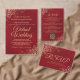 金ゴールドレースをクリムゾンレッド結婚のリハーサルディナー 箔招待状