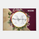 モノグラムの文字と名前を持つウェルカムフォーマット。金色の大理石の模様と斜めに重ね無地のられたブルゴーニュ色でデザイン。フローラのブーケの上にフェイクバラや縁どカーネーションや他の花が積み重ねられた金ゴールド箔を持つ円かわいらし。あなたの名前と円の内側のモノグラムでパーソナライズ。