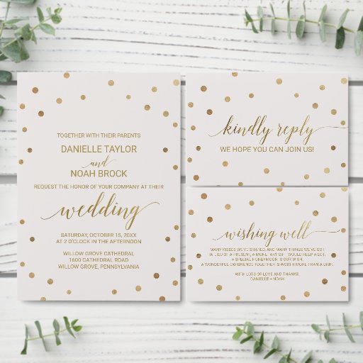 金ゴールド水玉模様ブライダルシャワーレシピカード ポストカード