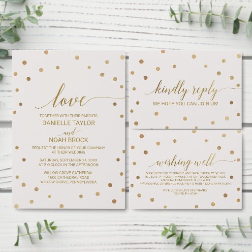 金ゴールド水玉模様曲リクエストRSVPポストカード インビテーションポストカード