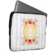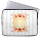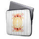 いかり航海のラップトップスリーブデザイン金ゴールドとのパタストライプーン背景と水色フローラ詳細。