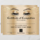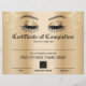 金ゴールドモダンの点滅と眉のサロンの完了賞の証明書。