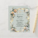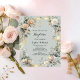 セージの緑の背景。白飾と黄色の花模様と金色のリボン黄金の十字架。名前と詳細のパーソナライズおよび追加1シート= 1インビション印刷エッジからエッジまで。