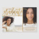 カスタム手頃は写真と文字とパーソナライズされた一緒に卒業発表の磁石を印刷。このモダンエレガントデザインは、金ゴールドフォイル効果モダンを持つスクリプフェイクトフォントを特徴とする。卒業した年、名前と学校の詳細、またはその他の文字と一緒に2つのシニア写真を追加カスタムする。デザインツールを使用して、任意の背景色を選択したり、写真を追加したり、文字のフォントと色を編集したりする。このシックなデザインは中学、高校、大学生に最適!