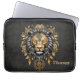 金威厳のあるの獅子の頭に黒い牡丹。 ラップトップスリーブ