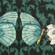 ビーナス・フライトラップ植物と花を訪れる青い蝶の念入りなスタイルイラストレーションを特徴とする壁紙。芸術インスパイア工芸ビクトリアン運動によって、このデザインはゴシック様式のオーラと色鮮やかを持つ。