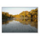 金木および池。 これはPeoria、ILの私の家の西のスイレンの浮いている葉が付いている美しい池のチャーターOak Park 「北湖」の私の秋の2004年の写真です。 メッセージカード。