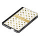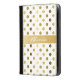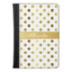 ゴールド・トーンおよび白い水玉模様パターンでされるシックなKindleの火HD/HDXのフォリオの場合。 ゴールド・トーンのリボンのグラフィックに、中心を渡って、あなた自身のためにまたは素晴らしいギフトのアイディアとして、個人化なること準備ができた白い原稿の文字があります。
