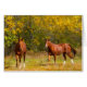 金紅葉の背景に対して歩いているクリの馬: すべての馬好きのためのメッセージカード。