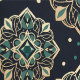 曼荼羅幾何学的華美複雑な金ゴールドエメラルド対称の装飾パターン