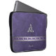 銀製のケルト結び目模様のモノグラムが付いている紫色の革 ラップトップスリーブ