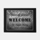 鋼板印家族の歓迎の玄関マットの靴。 友人のためのカスタムなドア・マット、家族、隣人、ビジネス、会社、店、店、オフィス、新婚者、氏および夫人couple等はあなた自身のおもしろいの喜ばしい徴候メッセージ、住所、屋家番号、姓を加えましたり、年の日付、モノグラム、姓またはユーモアのあるな引用文を確立しました。 新しい家または引っ越し祝いパーティーのためのかわいいギフトのアイディア。 灰色の建築工事の金属板の背景の質のイメージのスタイリッシュなタイポグラフィのテンプレート。 ボーダーが付いているPersonalizableの玄関マットの印。 正面玄関、通路またはホールのためのあなた自身のおもしろいな記入項目のマット/敷物を作成して下さい。 あなたの家のためのカスタマイズ可能な家の装飾/装飾。 ノベルティの家の装飾のギフトのアイディア。 小さくおよび大きい/大型で利用できる。
