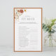 フローラのトレンディーの水の色のブライダルシャワーの花束を特集したエレガントモダン最高の、赤面の暖かいニュートラルな色合い、白、マリゴールドの黄色と燃えたシエナのゲーム"誰が花嫁を知っている縁ど"は、調整さび燃えたオレンジ色を燃やした。柔らかいオフブラックで質問をパーソナライズし、美しい手書き書きモダンでアクセント。共同調整スイートの一部。https://www.zazzle.com/collections/elegant_orange_water color_フローラ_ブライダル_shower-119388823689132589一致する製品のデザイザを表示す連絡る著作権Anastasia Surridge for エレガント招待状,全著作権所有。
