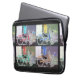 この13インチラップトップスリーブのカラフル、オリジナルデザインは、ZoeSPEAKがフロリダ州鍵ウエストの店の外に駐車した自転車のオリジナル写真から作った。自転車の後ろつるの開いたドアの店からの服。写真は、赤いバイク、青いバイク、緑のバイク、黄色のバイクの4つの配色で行われ、対応する衣類の色を持つ。背景はメイブやオリーブのグレーに抑えられた色合いで、全体的な背景は大理不尽な黒である。